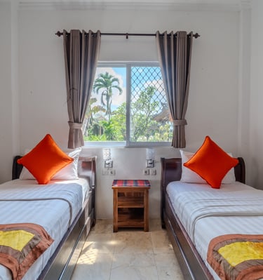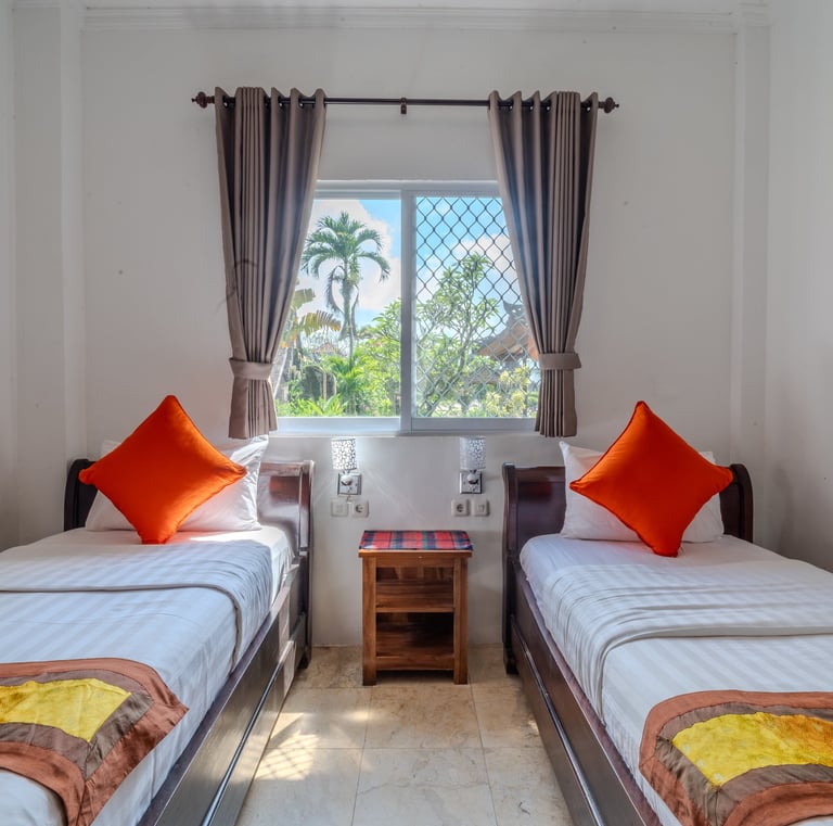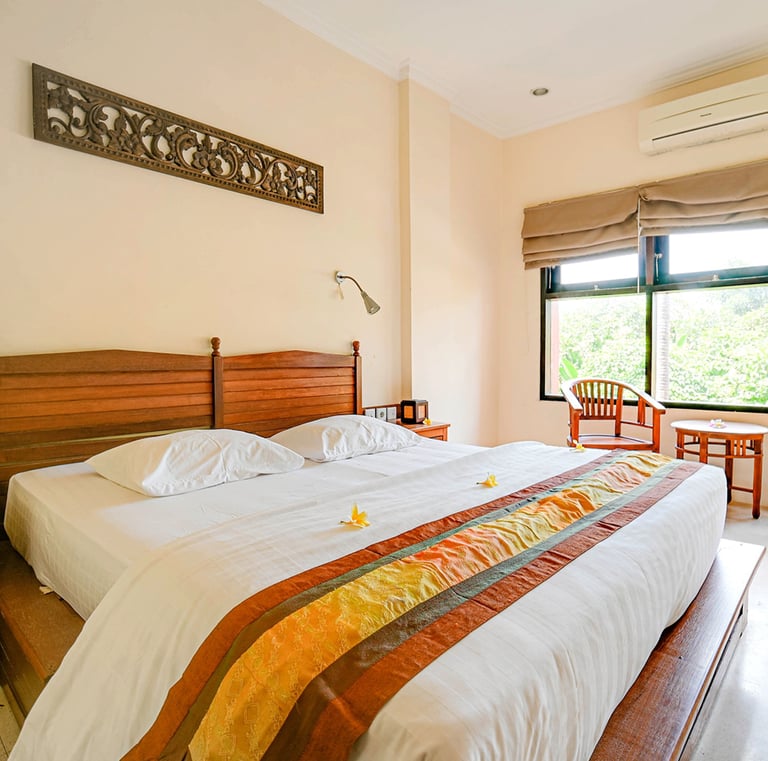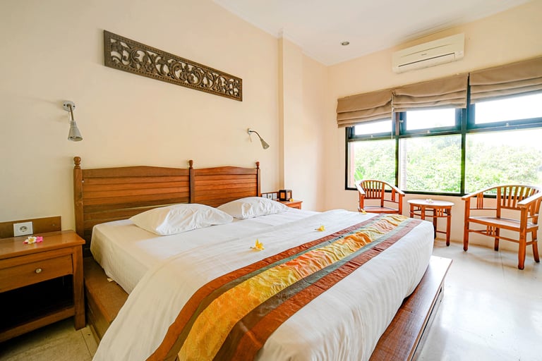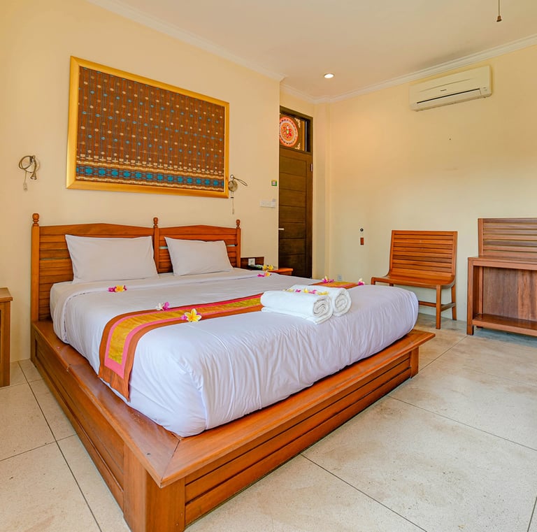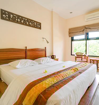 Temukan ketenangan di setiap sudut kamar kami yang dirancang untuk kenyamanan dan ketentraman Anda selama menginap di Suly Resort Ubud.